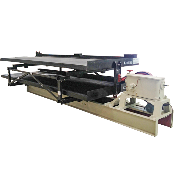 6-S雙層搖床占地面積小、處理量大、省電節能、設備成本相對低廉,具有富礦比高,選別效率高,看管容易,便于調節沖程、沖次等優點。在改變橫向坡度和沖程時仍可保持床面運行平衡,彈簧放置于在箱體內,結構緊湊,并且能一次得出最終精礦和最終尾礦。